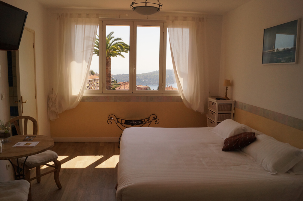 Les chambres avec vue sur la mer, la baie de Villefranche et le Cap Ferrat sont spacieuses et accueillantes, équipées de lits « king size » pour la plupart ou « queen size » pour les autres. Salle de bains avec baignoire ou douche. Les chambres vue mer sont disponibles en version Double, Triple et Familiale
